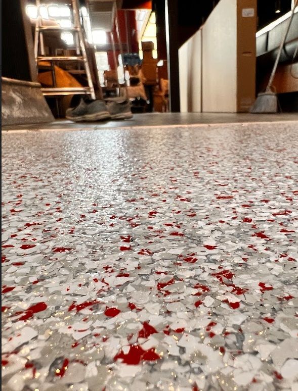 Transform your garage into a functional, attractive space with our premium epoxy flooring. Our durable coatings protect against oil stains, chemicals, and heavy impacts while offering a polished, professional look. Choose from decorative flake finishes, solid colors, or metallic effects to customize your garage floor to your liking.